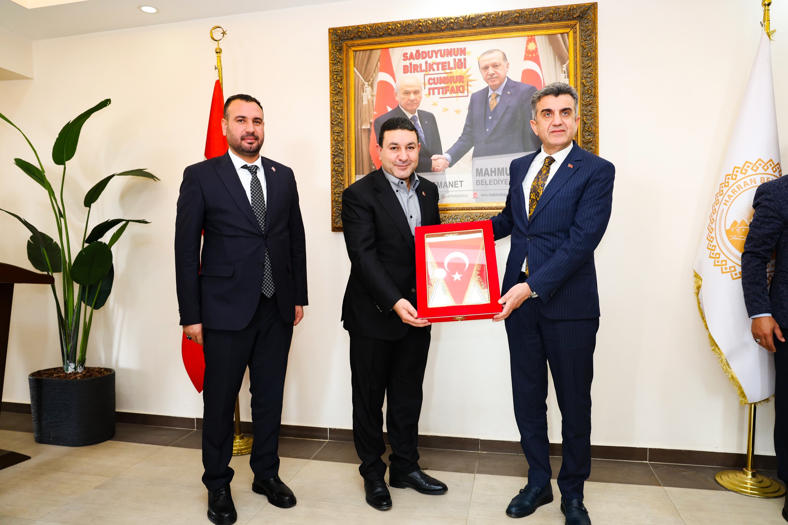 Cumhur İttifakı’nın ortağı AK Parti’nin İl yönetimi Harran Belediye Başkanı Mahmut Özyavuz’u ziyaret etti.