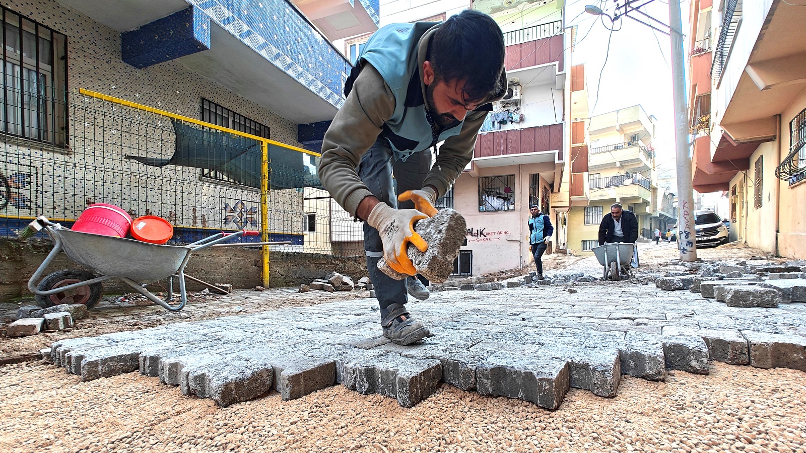 Eyyübiye Belediye Başkanı Mehmet Kuş’un girişimleri sonucu ilçede on mahalleye doğalgaz ulaştırılırken, doğalgaz şebeke tesisi nedeniyle kazı yapılan sokaklardaki kilitli parke yenileme ve onarım çalışmaları farklı noktalarda hızla gerçekleştiriliyor.